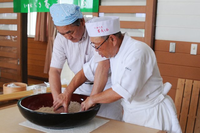 育てる、挽く、打つ、そばの全てが大好きだという宮本さん。なかでも、“打つ”ことに関しては、友人の紹介で知り合った、観光庁が選定する「観光カリスマ百選」にも選ばれている『唐橋 宏さん』の元に毎月通い、そばづくりの知識・技能・経験を学んだそうです。 宮本さん「そば打ちは、元々あゆ釣りの仲間達と一緒に始めましたが、そこからどんどんのめり込んでいきました。唐橋さんの所にはただ技術を学ぶだけじゃなく、“教え方”も知りたくて通いました。そば打ちを教える時、『こうやってください』と言うよりも、“なぜそうするか”というロジックを伝えると、よりわかりやすいと思ったからです。また、唐橋さんの所には全国からそば打ちを学びたいという人達が集まってくるので、県外の人達との繋がりができたのも良かったですね。」 宮本さんが副幹事長を務める『いばらき蕎麦の会』では年に10回ほどそば打ちの指導を行うそうです。更に宮本さんは、水戸農業高校『蕎麦打ち部』の指導を務め、全国そば打ち選手権大会出場へ導くなど、そば作りだけでなく、そばの普及活動も積極的におこなっています。
