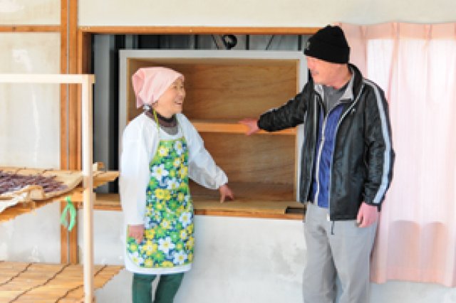 けい子さんのおかき作りは、米研ぎから始まり、蒸し、餅つき、熟成、乾燥、揚げ・焼き、そして味付けまで、全てが手作り。なかでも『乾燥』の工程が安定するまでには、長い時間がかかったそうです。 「乾燥させるのに、直射日光はダメだとわかったので室内に置いたらカビたり、風をあてて乾燥させすぎても揚げたらバラバラになってしまったり。一番難しかった"乾燥の度合"が、手で触ってわかるようになるまではだいたい2年くらいかかりましたね。」 試行錯誤の末完成した大川農園のおかき。パッケージデザインも専門家に依頼し、デザインを施した贈答用の箱も作りました。現在は、黒米入りシリーズの揚げおかき、たがねおかき、発芽玄米おかきを始め、焼きおかきに海老入り、カレー味等およそ6種類のおかきの製造・販売を行っています。