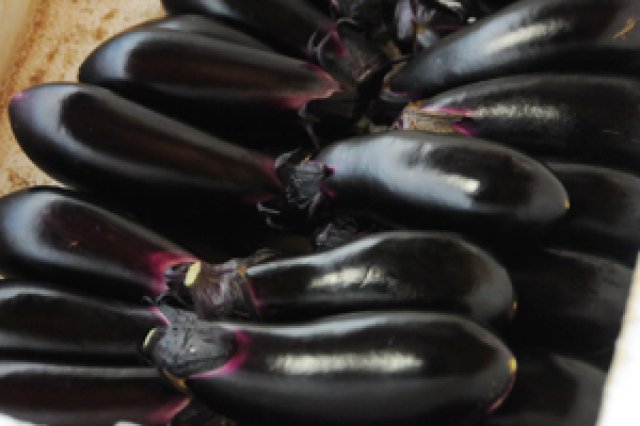 奥久慈なすは、一個85グラム~90グラム程度の小ぶりなものが一番おいしいとされています。皮は薄く柔らかで、中身は火を通すと口の中でとろけそうなほど。梶山さんにおいしいなすの選び方を教えていただきました。 「鮮度の良いなすを選ぶには、ヘタの先の切り口を見てください。切り口が緑色に近く、ひからびていない方がより新鮮です。」