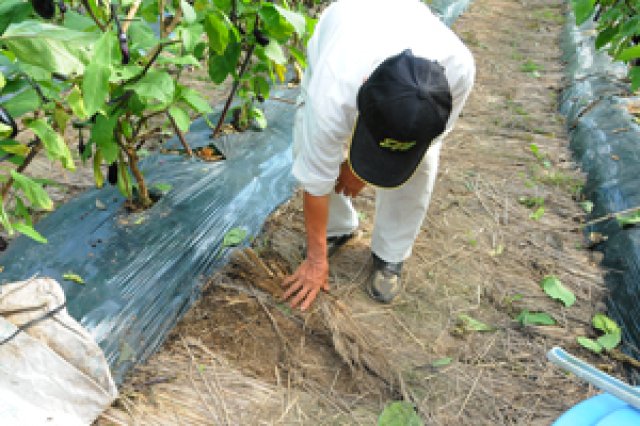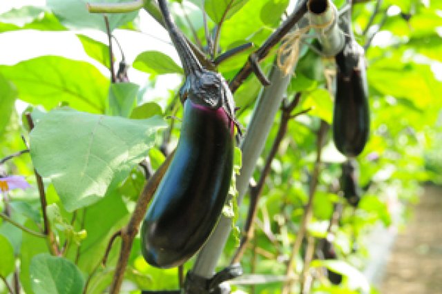 奥久慈なすは、ツヤと張りのある美しい紺色の柔らかい皮でアクが少なく、果肉がしっかりしているのが特徴です。おいしいなすを作る秘けつは、奥久慈の地域環境も大きく関わっているそうです。 「ここは昔から畜産が盛んな地域なんです。ビーフラインと名の付く道路もあるほど。そのため良質な牛糞たい肥がすぐに手に入る環境なので、土作りには牛糞たい肥を使っています。肥料も有機質肥料を使い、出来たたい肥はすぐには使わず、年に何度も切り返し、塩分を取り除いて、一年以上熟成させてから使います。」 奥久慈なす生産部会は、部会員全員がエコファーマーを取得しています。また、生産者同士が集まり、目揃い会も行っています。環境にやさしい農業と、高品質な奥久慈なすの生産維持を目指し、安全・安心のなす作りに取り組んでいます。 エコファーマー・・・茨城県が認定している、環境にやさしい農業に取り組む生産者。