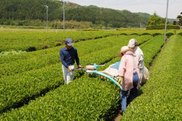 高安園の古内茶は、豊かな香りと渋みと甘みのバランスが絶妙な逸品です。 「おいしいお茶にする為に大事なことは、土作りです。主にお茶専用の肥料と、油粕などの有機肥料を使って土を作りするのですが、うちの茶畑は一カ所ではなく点々とあるので、その畑によって肥料の量や成分をその都度工夫しています。また、うちのおじいちゃんが草取りを毎日やってくれているので、除草剤は一切使っていません。」と高安さん。 茶畑の管理や茶つみは、おじいちゃん、おばあちゃん、高安夫妻にその息子さん達まで、高安一家総出でおこなわれています。