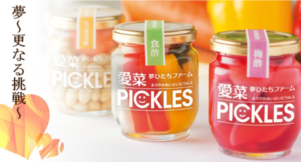 梶山さんは、地元農家の有志を募り、自分達で作った野菜でピクルスを作ることにしました。 「ピクルスは外国産がほとんどなので、国内産のものがあってもいいんじゃないか。子供でも食べられる日本人向けのピクルスを作ろう。」と思った梶山さん。当時、農業体験に来ていた国民宿舎鵜の岬の元シェフにピクルスのレシピを教わり、仲間みんなで試作を開始。糖度と酸性度を計る機械も購入し、何百回という試作、味見を繰り返しながら、数ヵ月に渡る研究を経て、昆布だしや日立市十王地区産のはちみつなどが入った『愛菜ピクルス』が誕生しました。