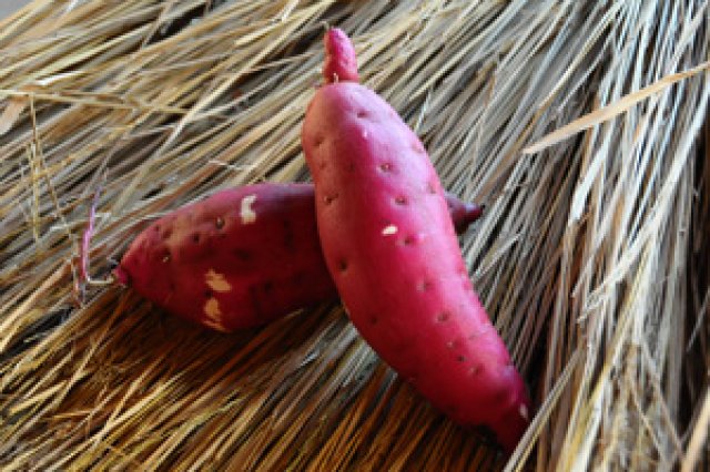 吉田さんがさつまいも創りをしている鉾田市(旧鹿島郡旭鹿田地区)の土は、柔らかい火山灰土、黒土・赤土でできています。「”茨城県土作りコンクール最優秀賞”の実積と知識を伝承しています。50年の智恵を活かし、100%の土作り、100%の自然エネルギーでさつまいも創りをしています。」と吉田さん。 30ha(坪数:9万坪)全域の畑に、機械を使わず、全て手作業で一本一本丁寧に植えつけるそうです。 また、種芋も自家生産しており、健全な細胞を持った親苗で子芋を育て、種芋にするそうです。この種芋でとれた苗を植え付け(定植)、できた芋(孫芋)が商品になります。3年近くかかってお客様の元にさつまいもを届けることができます。
