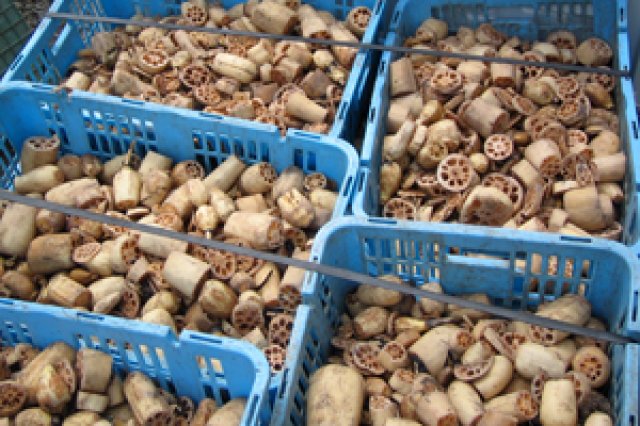 全国一の蓮根生産地の茨城県の中でも圧倒的なシェアを誇る霞ヶ浦湖畔地域。湖岸という水源に恵まれたこの地域は、気候も蓮根栽培に適しており、良質な蓮根が生産されています。このミネラル豊富な蓮根を、出荷前45日から通常の飼料に約15%加えた豚を蓮根豚としています。 日本は元々、各農家が家畜を飼育し、化成肥料の代わりに堆肥を畑にまき、作物を作るという、循環型農業を自然に行ってきました。廣原畜産では、これを、地域一帯で行うことで、飼料や堆肥の運搬コストを下げ、低コストで高品質な農産物、畜産物を生産することに成功しています。 蓮根豚は、脂があっさりとしたクセのない風味が特徴です。 昨年(2012年)の2月には自前の加工所も完成させ、肉のスライスや挽肉を作り、ネットで販売したり料理に使ってくれる飲食店を探すなど、蓮根豚のよさを広める取り組みを行っています。