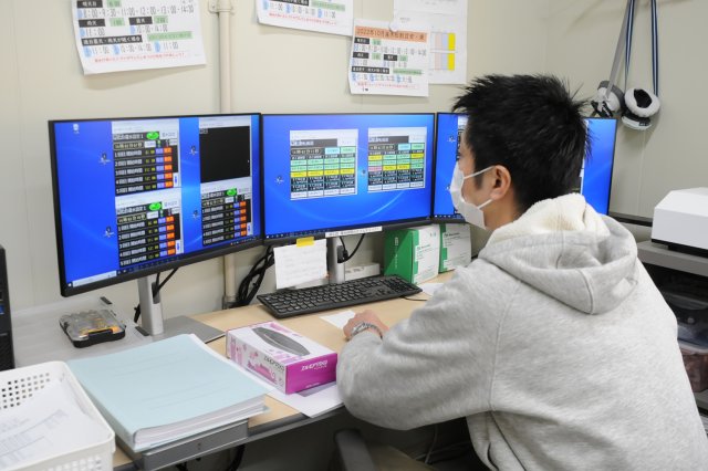 土の代わりにサンゴ砂礫を使い、培養液と呼ばれる肥料を溶かした液体を使う養液栽培。 換気を行い、養液や肥料を与えるのは施設のシステムですが、その設定を行うのは人。北茨城ファームのスタッフ達は、季節によって変わる温度や湿度、環境の変化を日々見極め、毎日トマトの木々を見ながら管理を行っています。 「甘いトマトを作るために、無駄な葉や枝を切ったり、実の色や木の成長具合を見て、天候を見ながら肥料濃度の微調整などを行っています。とにかく見てトマトの声を聞くことが大切だと思います」