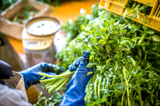 有限会社 三国園 は、茨城県西部に位置する筑西市で1980年から「クレソン」の生産と販売を行っている、クレソンの専門会社です。 クレソンは、ヨーロッパ原産のアブラナ科の野菜で、天然物は綺麗な水辺に自生しています。あわい苦みが特長で、カリウム、タンパク質、カルシウム、鉄、亜鉛、ビタミンA・C、食物繊維などの栄養素を幅広く含んでいます。 クレソン生産農家の多くは水耕栽培を採用していますが、三国園では創業当初から土耕栽培にこだわっています。 「田んぼのような、水を含んだ土壌で栽培しています。土耕で栽培しているためか、一般的なクレソンよりも抗酸化力が1.5倍程高く、野菜の“苦み”や“エグみ”の原因と言われる硝酸イオン含量が1割以下という分析結果が出ています※」と語るのは、代表取締役の内海(うちうみ)真理子さん。父の代に東京都府中市でクレソンの卸をしていた三国園の経営者と知り合い、クレソン栽培を勧められ、筑西市で栽培を始めて社名を引き継ぎ、2019年に真理子さんが社長に就任しました。 「栄養素密度が野菜の中でもトップクラスのクレソンは、まさに『食べるエステ』です。美と健康を意識するお客様に喜んでいただきたい」と内海さん。 土耕で育てた三国園の「みくにクレソン」は、「味や香りが濃く、食べやすい」と好評で、大手スーパー等で販売されているほか、首都圏の有名レストランなどでも使用されています。 ※株式会社メディカル青果物研究所 野菜の健康診断より