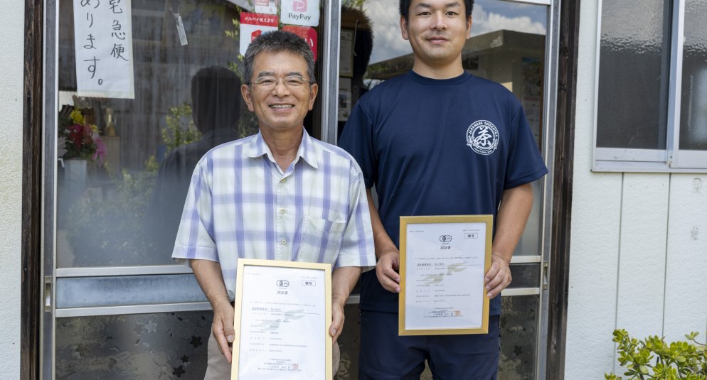 いまではJGAPの認証も取得し、さらにひとつ上のステージでお茶の生産に取り組んでいます。 有機栽培で育てたお茶「ORGANIC GREENTEA」は味が穏やかで、昔ながらの柔らかい香りと旨味が特徴といいます。そして、5代目の翔平さんは「せっかく父が取ってくれたJGAPなどの認証を大切にしつつ、少子高齢化で人手が少なくなる分、圃場管理をはじめ、少量でも質を高めたお茶づくりをしていきたいと思います。海外進出も含め検討しています」と語ってくれました。