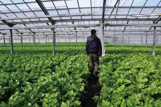 前進会のメンバー内田栄徳(ひでのり)さんは、伊藤さんの元で直に技術を学んだ父親の内田和幸さんと共に「土づくりと温度管理」にこだわる栽培を行っています。 1ha強の広大な内田さんのハウス内は、まだ小さな赤ちゃんセロリから出荷可能なセロリまで生育順に分かれています。 「セロリはまず、育苗ハウスで伊藤さんが育種したオリジナルの種を蒔いて苗を育ててから約1ヶ月ほどで育成ハウスに定植します。苗が土にちゃんと活着する(根付く)かが勝負所です。良い土が糖度の高いセロリを作るので、牛フンたい肥や腐葉土など有機質の肥料を入れたやわらかな土作りをして、根が張りやすい環境を整えています」と内田さん。 また、「定植してからの約30日間は、温度管理がとても重要だと思っているんです」と続けます。「セロリがちゃんと育つかどうかは温度管理の良し悪しにかかってきます。例えば新葉や茎が小さく“大きくならないかもしれない”と思ったら、普通は肥料をやって温度を上げると思うのですが、僕は逆に肥料はやらずに風を入れて温度を少し下げる。一見真逆の行為でも、こうすることで根がしっかり張って、のちにセロリが大きくなってくれるんです。こうしたことが常々起こるので、定植後の30日間は気が抜けません。逆にこの30日間をちゃんとクリアできれば、あとは放っておいても良いくらい」と笑います。 ハウスの温度管理は自動式ですが、生育状態に応じた細かな微調整は、やはり人の力でなければ行えません。