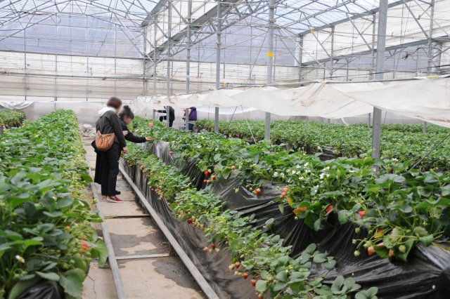 つくば市にある「つくばねファーム」は、筑波山のすそ野にかまえた1000坪のビニールハウスが目印の、「摘みたていちごの直売」と「いちご狩り」が人気のいちご園です。品種は、「紅ほっぺ」を主力に、「いばらキッス」、「恋みのり」、「おいCベリー」等4種類を生産しています。 つくばねファームのいちご(紅ほっぺ)は、第7回茨城いちごグランプリ(※)一般の部で「大賞」を受賞しているほど、その味はお墨付き。受賞について代表の小辻さんは、「光栄ですし、ありがたいです。チームで栽培にあたっているので、直売所に表彰状を飾らせてもらって、スタッフ一同士気が上がっています」とコメントしてくれました。 ※茨城いちごグランプリ…茨城県いちご経営研究会主催の年に1度の審査会。茨城県内各地のいちご生産者が栽培したいちご、栽培現場、管理方法を対象に審査が行われ、生産技術の腕を競い合う。