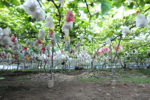 化学合成農薬と化学肥料を使わずにぶどう作りを始めた当時を振り返り、圷さんは言います。 「2年間くらいは上手く行くんです。でも3年目に入った途端、虫が付いたり病気が出たり、大変なことになりました。そこで当時、筑波大学が開いていた『つくば農学塾』で、改めて有機農業のなんたるかを学び、土づくりの方法を改め、そして与える水も変えました。」 落ち葉、稲わらやカニ、エビなど、山のものと海のものを使った堆肥を投入して土を作るとともに、クラスターの小さい水(※)に空気を入れる、エアレーションという方法で樹に水を与える『陸の水耕栽培』を用いました。この方法により、虫や病気になりにくく、根がしっかりと張った葉の元気な強い樹ができたそうです。 (※)水分子の集合体が小さく多い水のこと。吸収されやすく、細胞内への浸透も早いといわれる。