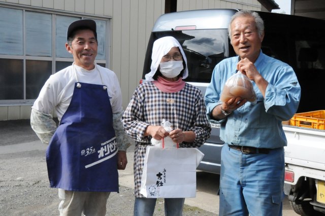 通常こんにゃく芋は、保存が効かないため収穫されるとすぐに精粉処理されます。市販されているほとんどのこんにゃく製品は、精粉された「こんにゃく粉」から作られたものです。しかし、“こんにゃくどころ”大子町のスーパーや直売所では、冬になると“手作りこんにゃく”の姿が多く見られ、手作りこんにゃく専門店もあります。 こんにゃく芋をすって作った“手作りこんにゃく”は、もちもちとした食感と芋本来の香りが味わえる逸品。生産者は皆自宅でこんにゃくを作るそうですが、菊池さんから、“こんにゃく名人”をご紹介いただきました。 こんにゃく名人のこんにゃくは、手に持つとこぼれてしまいそうなほど柔らかく、とろけるような食感のなかに弾力もあり、芋の風味がたまらない、本当においしいこんにゃくでした。 「こんにゃく作りは、素材そのものをすって固めるシンプルな製法なので、芋の良し悪しで味が決まる。菊池さんの芋だからこそこの味になるんだよ。」と名人は言います。