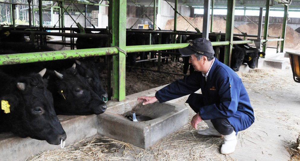 橋本さんは、牛が認める“牛使い”だと、美明豚生産者の中村さんは言います。黒毛和牛は出荷の時期ともなると、軽自動車ほどの大きさになり、牛が嫌だと言えば人間の力で動かすことは困難です。ある日、同業者(牛生産者)の牛が動かなくてどうしようもないと困っているところにたまたま現れた橋本さん。橋本さんがその牛のタズナを持って引いた途端、それまではテコでも動かなかった牛がひょいと起き上がったのだそうです。 橋本さん「牛を育てるのは、赤ちゃんを育てるのと同じです。言葉は話せないけど、愛情をかけて注意深く見ていれば、何を求めているかわかります。」 牛と向き合うこと30年以上、子牛の買付けから肥育を続けてきたその経験から、牛の目を見れば言わんとすることがわかるのだといいます。