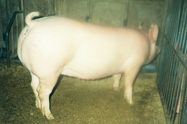根っからの動物好きで、子供の頃から豚と共に育ち、自分の農場にいる豚の一匹一匹全てを個々に認識しているという(有)キングポーク代表の小菅さん。動物好きからか競走馬も所有していたそうです。 「馬を持っていたので、豚を見る目も仲間達とは少し違っていました。アメリカにデュロック種の買付けに行った時、その会場にいたチャンピオン豚などと比べると見た目の悪い豚がいました。周囲の誰もが『これだけはやめておけ』と言いました。が、私にはそうは思えなかった。馬の見方からいうと、皮膚の柔らかさや毛並が非常に重要です。その豚は体は小さかったものの皮膚が薄く、細くて柔らかい被毛が生えていたのです。豚の毛の柔らかさは身体の柔らかさ、肉の柔らかさを表します。その豚は皮膚・被毛の素晴らしさに加えて尾の付け根が太かった。尾の付け根が太い豚は大きくなるので、これは間違いなく素晴らしい豚になると確信しました。仲間達に笑われながらも、格安でこの豚を購入しました。」 小菅さんの予想通り、この豚は、アメリカで仲間達が購入したどの豚よりも大きくなり、艶やかで柔らかな肉質の元豚となる素晴らしい豚に成長しました。その豚は“タンカー・タイム”と名付けられ、その子孫達は今でも全国各地で開かれるオークションで上位を占めているそうです。 この経験から自身の目利きに自信を持った小菅さんは、豚の皮膚皮毛爪の質に重点をおいて系統(遺伝)から肉質の改良を行いました。また、より強健性の優れた豚を作る為に、肩甲骨の開きや爪の質等を中心に改良選抜していったそうです。またランドレース、大ヨーク種も同じ方法で改良選抜する事によって、デュロック、ランドレース、大ヨークの3品種が同じ肉質に仕上がり、小菅さんの育てた豚はどれも素晴らしい豚になっていったそうです。