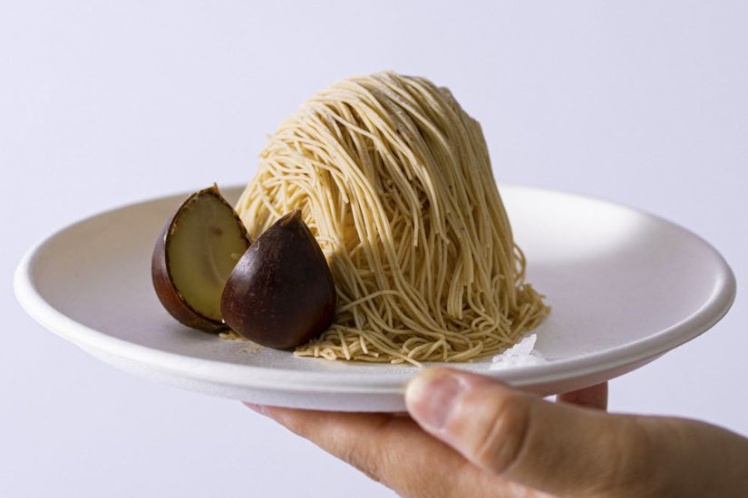 フードコートでは、笠間市農業公社の農園の栗のみを使ったスイーツ、ドリンクなどを味わえる笠間の栗専門店「楽栗 La Kuri」の数量限定の「楽栗filo(フィーロ)」が大人気。栗のクリームの上に栗のペーストを糸(フィーロ)状に絞ったモンブランで、岩塩と蒸し栗が添えられています。