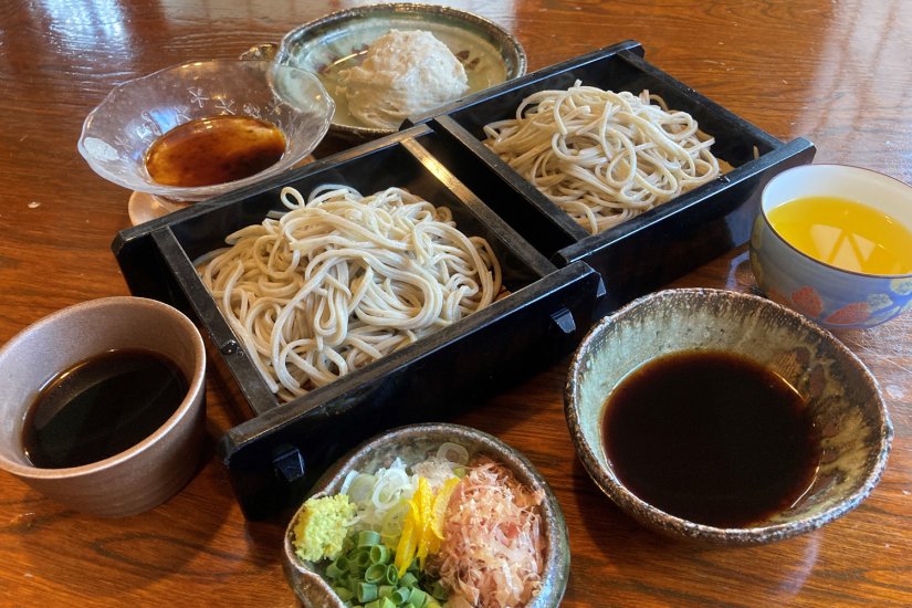 土日祝日限定で10食のみ提供している「十割そば」は、常陸秋そばの持つ香りを存分に堪能できる一品。そば好きの方におすすめの「そばづくし」は、ざるそば、そばがき、そば豆腐のデザートにそば茶と、まさにそばづくしです。