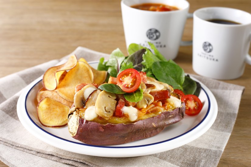 焼き芋をはじめとする様々なさつまいも関連商品とともに、快適な時間をお過ごしいただけるカフェコーナーで、パフェやソフトクリーム等のスイーツや、さつまいもを使用したメニューを提供しています。