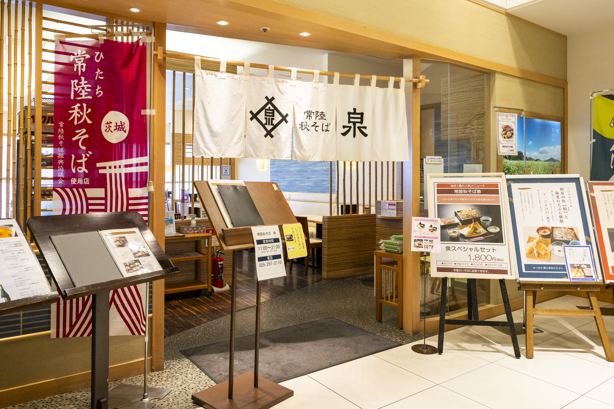 水戸京成百貨店レストラン街の一角に店を構える常陸秋そば泉。県内屈指の常陸秋そば生産者であるイワセアグリセンターから直接仕入れる常陸秋そばを使い、こだわった自家製そばが自慢の蕎麦店です。