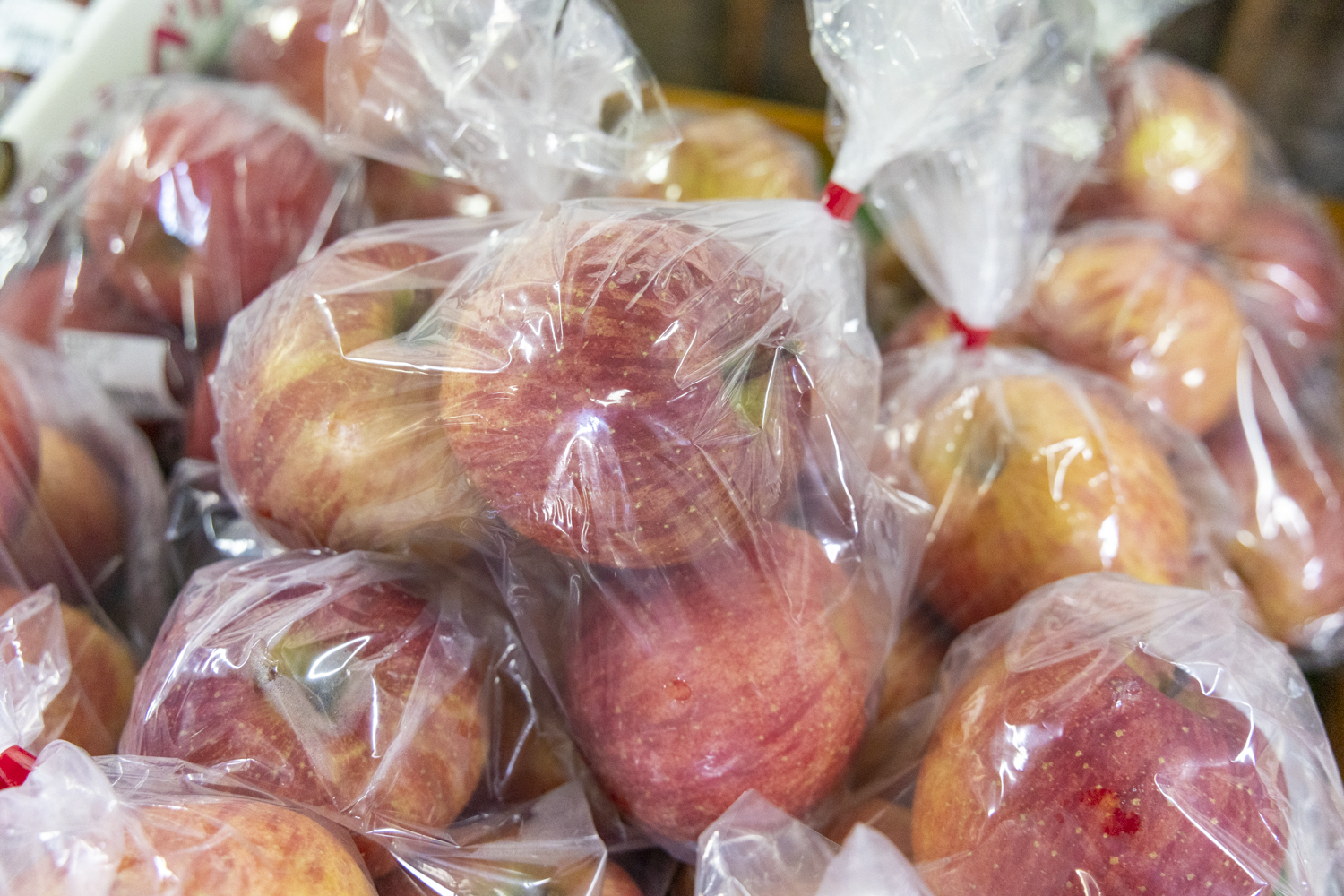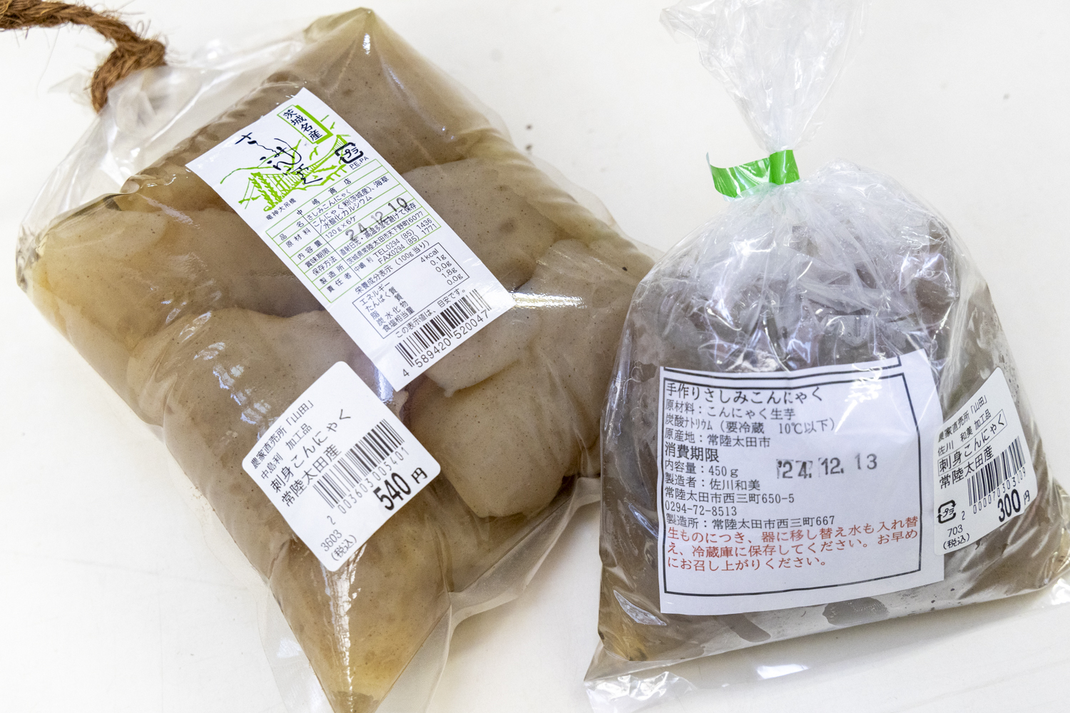 約50名の農家が、その時々で採れる野菜や果物、手づくりの加工品、飾り物などを持ち寄り並べています。この地域の特産品である「凍みこんにゃく」や、「常陸秋そば粉」も人気。中には、パパイヤや西洋野菜などちょっと変わった品が並ぶこともあります。「よくある普通の野菜ばかりではお客さんも自分も飽きちゃうから」と話すのは、農家直売所「山田」利用組合の組合長の天下井さん。