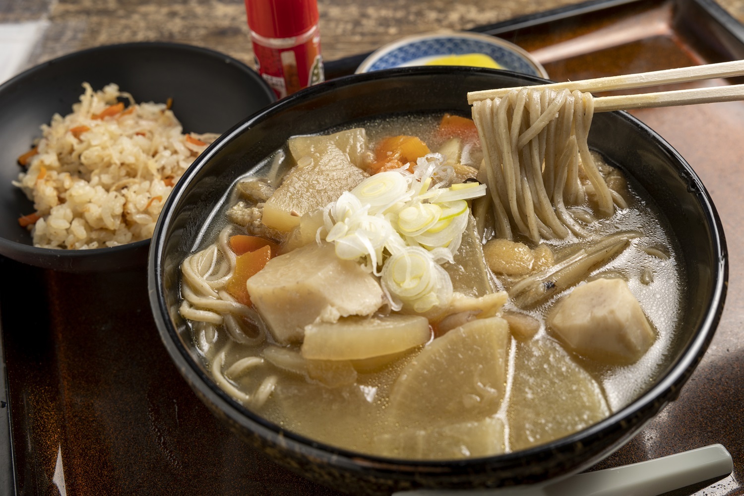 直売所でも取り扱う新鮮な地元野菜を使った天ぷらが付く「天ざるそば」は直売所併設ならではのおいしさで、定番の人気商品です。その他にも、温かいものから冷たいものまで各種取り揃えています。冬の時期限定でけんちんそばも提供。昔から変わらない、ホッと癒される優しい味です。