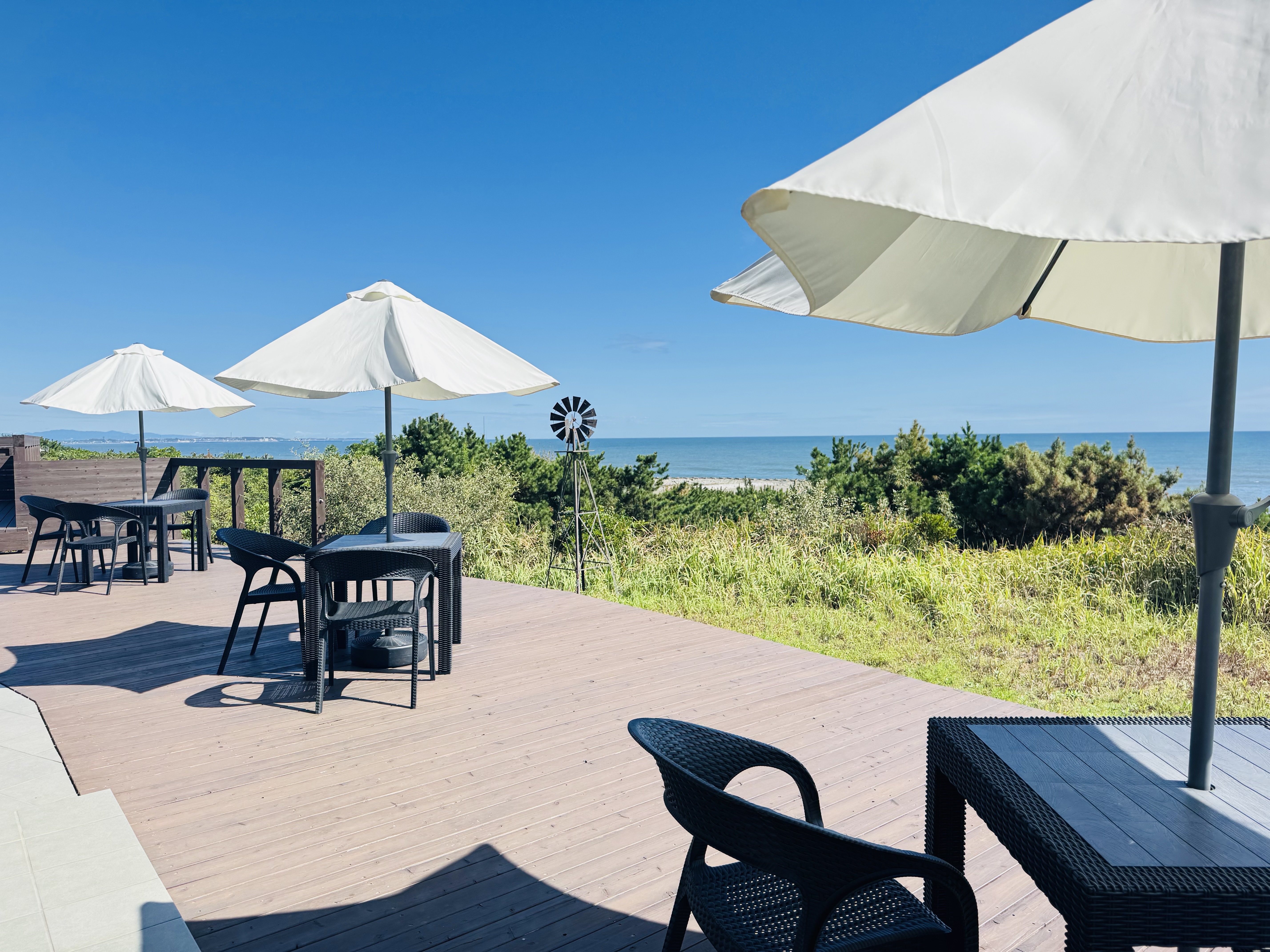 鉾田の美しい海岸沿いに立つ建屋は「自然」と「時間」を静かに感じる大人の空間というコンセプトをそのまま体現した作り。さざ波の音が心地よいBGMと思えるほど緩やかな時が流れます。