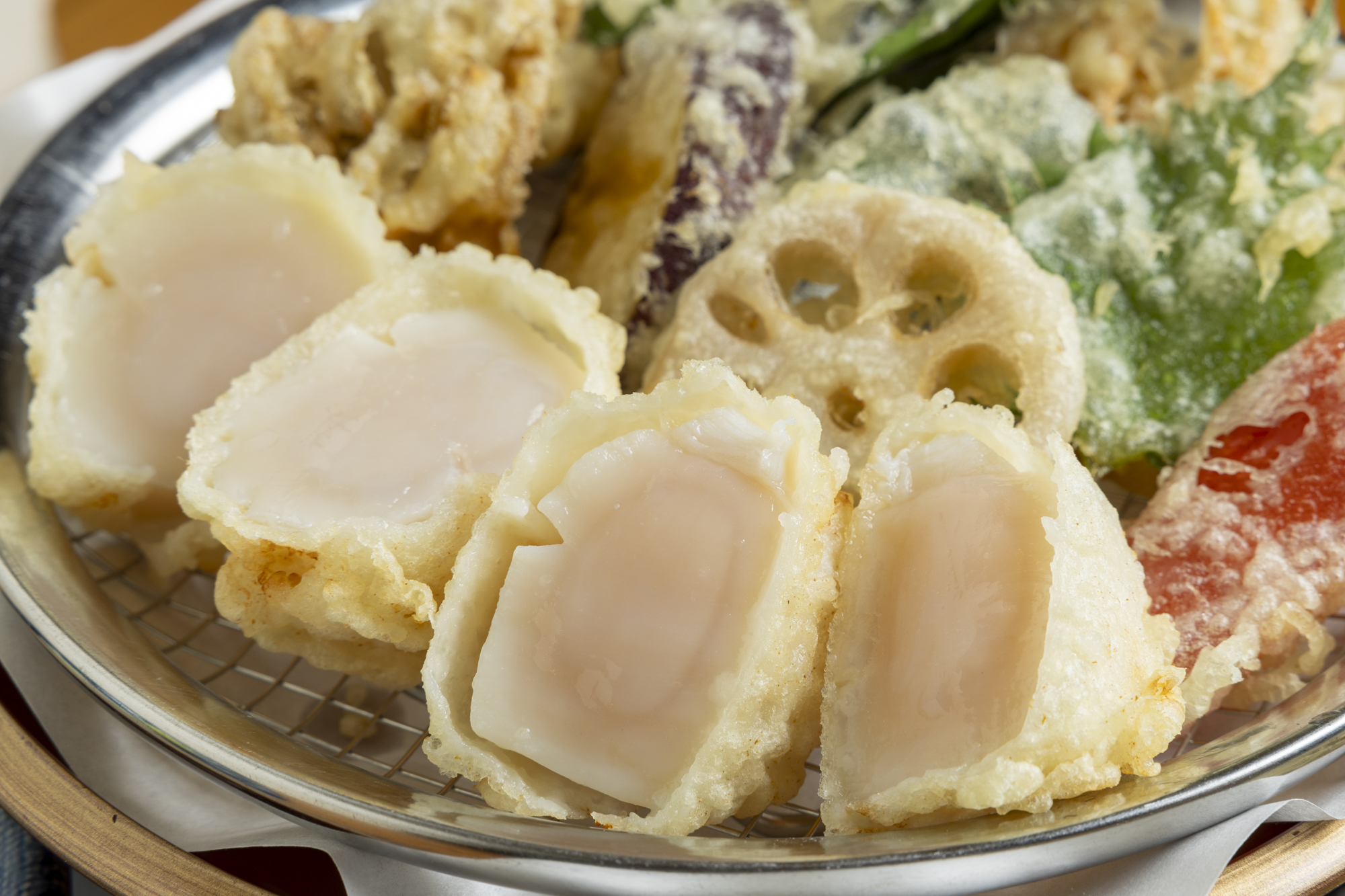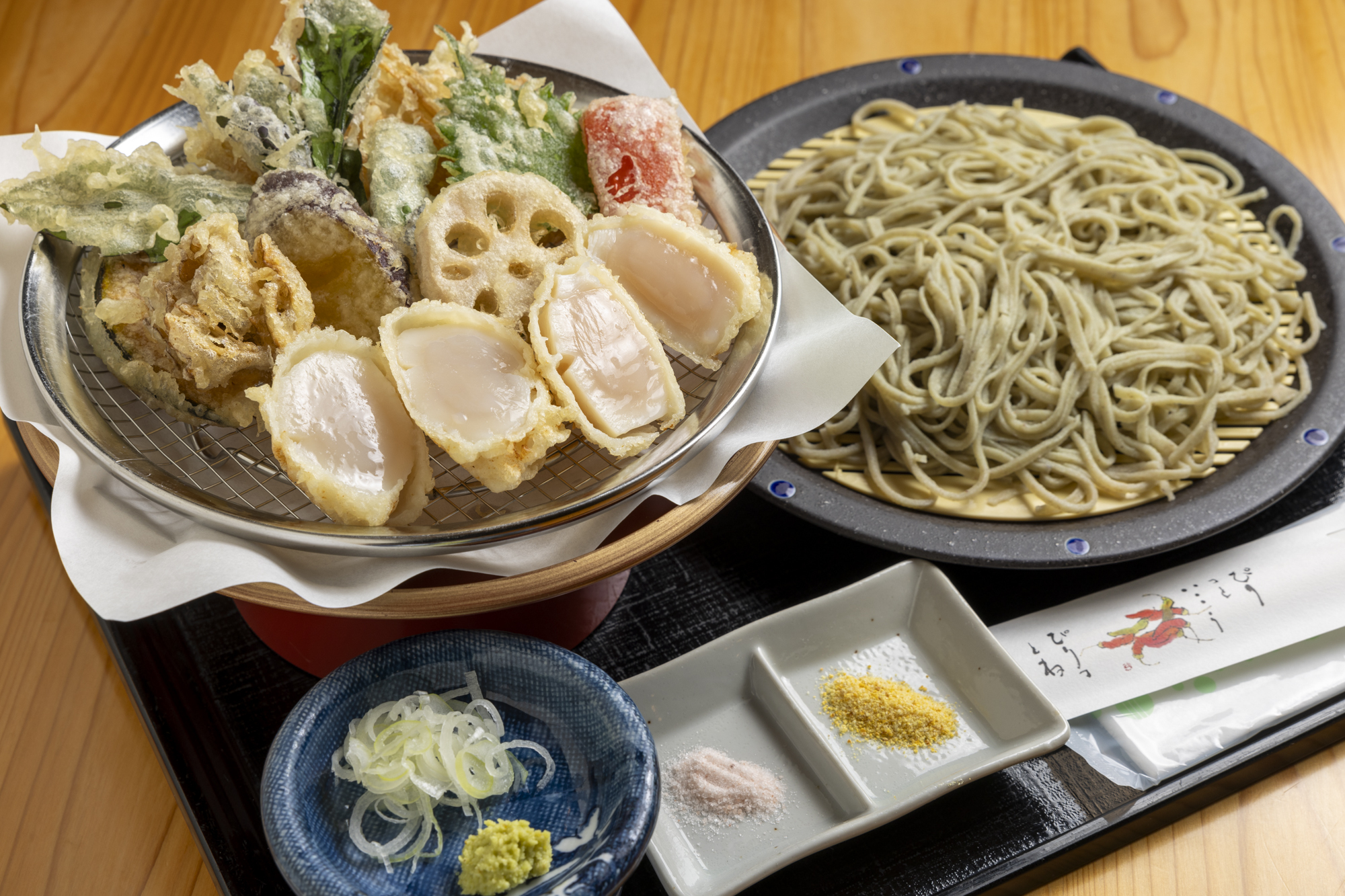 また、人気の天然特大ホタテ貝柱天ざるそばも、厳選素材を味わえる贅沢な組み合わせです。北海道産の刺身で食べるホタテの貝柱を贅沢に天ぷらに‼レア食感のホタテとカリっと揚がった衣の組み合わせも秀逸です。徹底的にこだわった常陸秋そばに県内随一の素材にこだわった蕎麦前を楽しみたいなら、ここは外せないお店です。