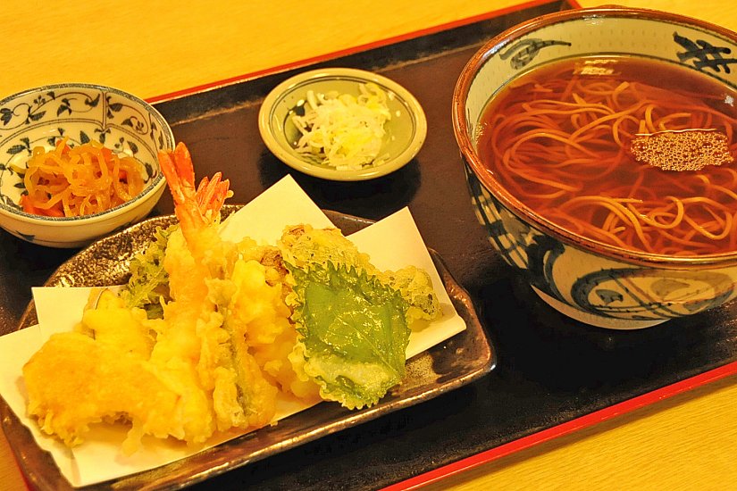 サクッと揚がった天婦羅そばをはじめ、甘く上品なダシの効いた具だくさんのけんちんそばと限定の十割そばが評判の店です。