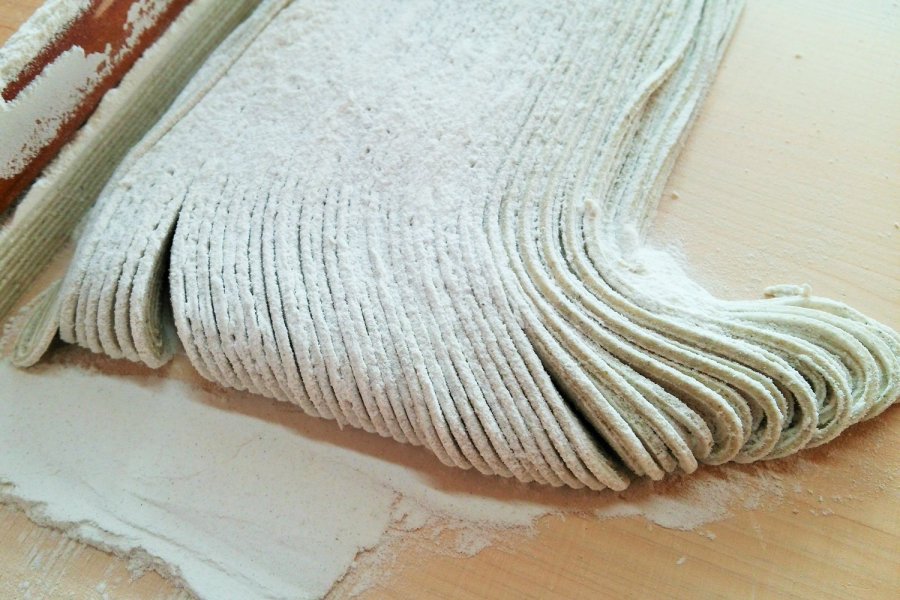「筑山亭」の蕎麦は、季節に応じて蕎麦粉の配合を変えたこだわりの粗挽き。「風味豊かな蕎麦の味を噛みしめて味わって欲しい」との店主の思いから、少し太めでコシのある麺が特長です。