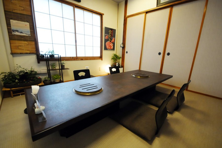 店内は、客席が広めに取られているためゆっくりと食事を楽しめます。2名様から4名様用の個室や、5名様~8名様用の個室、更には30名様までご利用いただける宴会場も完備。