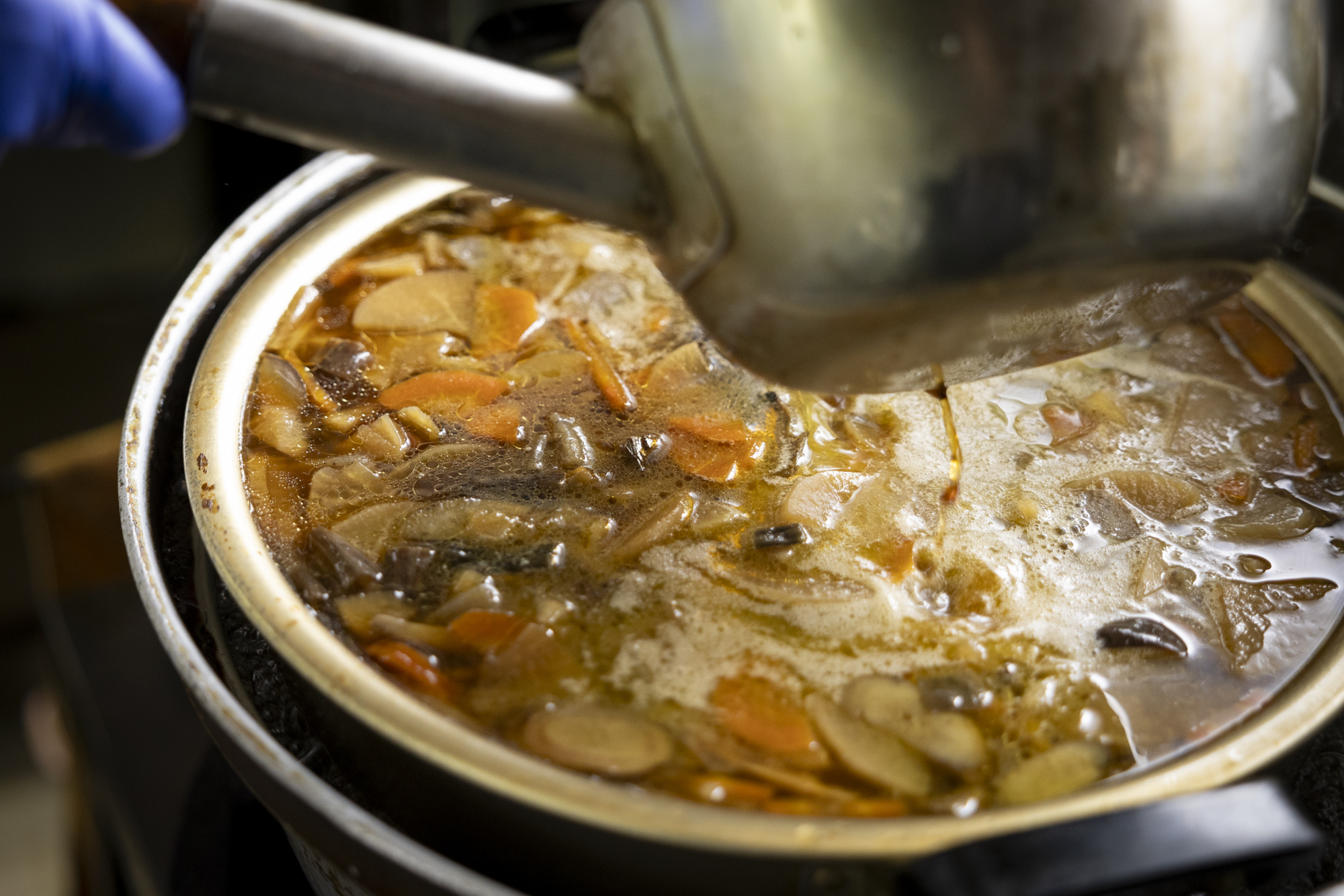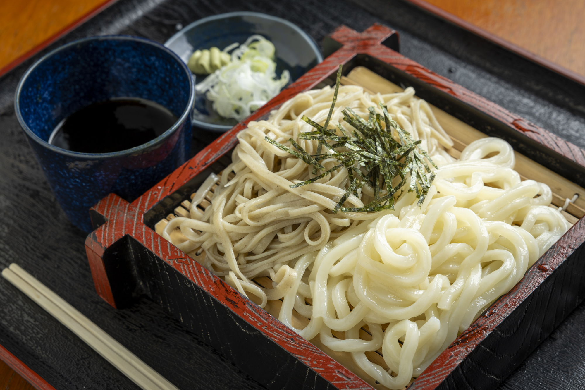 さらにけんちんなどに使う野菜も、同店で働く地元のお母さんたちが育てたものなど、極力地元産を使用。低価格にも関わらず本格的な常陸秋そばを楽しめます。蕎麦は太さの違うものが混じりあいますが、逆にそれが絶妙な変化のあるのど越しとコクを生み出します。昔ながらのつけけんちんは常陸大宮伝統の醤油ベース。里芋も芋がらもたっぷり入った母の味です。SNSで話題になったこともある「パンダそば」は、白いうどんと黒い蕎麦の2色あいもり。柔らかな蕎麦汁にたっぷり浸して食べるのがおすすめです。