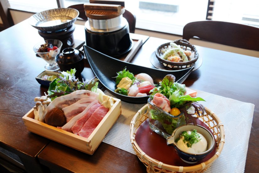おススメのメニューは茨城食材贅沢に味わうことができる「寿香(じゅこう)」。前菜・お刺身・揚物・常陸牛のしゃぶしゃぶ・しらすの釜炊きごはん、蛤の潮汁・デザート・コーヒーのコースメニューで、おいしい茨城の食材を楽しむことができます。