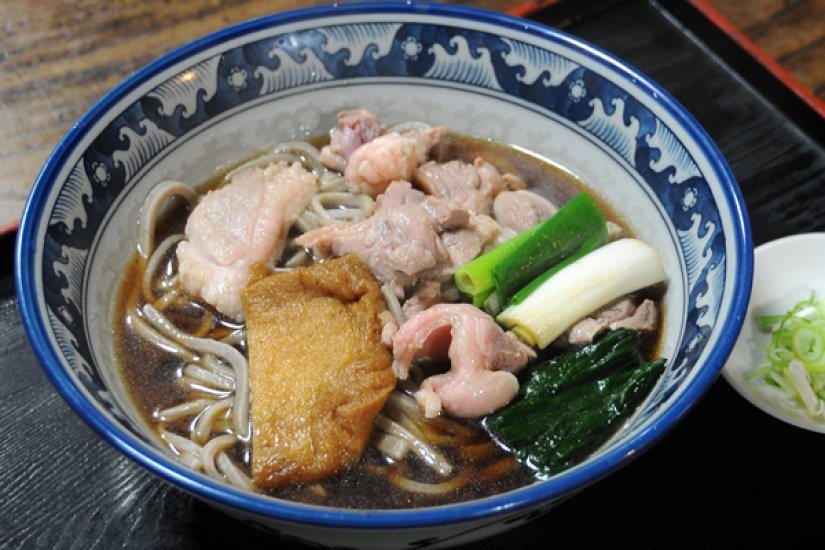 鴨肉と鴨の出汁がたっぷりと入った通年で人気のかもなんそば。つけ、かけ、どちらかをお選びいただけます。
