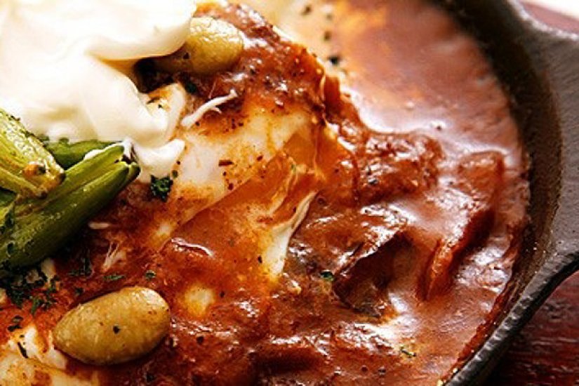 常陸牛の内ももを使用し、手造りで丁寧に仕上げたハンバーグをストロガノフにしたソースで煮込みました。