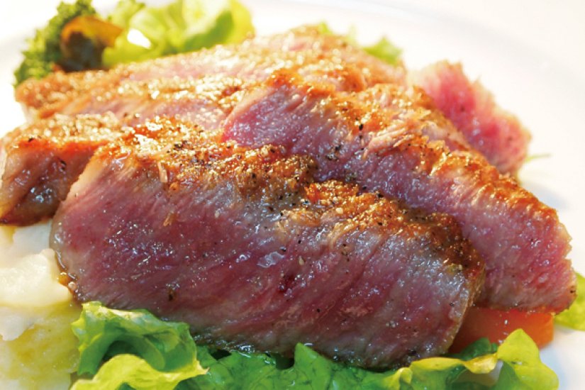 茨城の銘柄牛常陸牛のサーロインステーキ。