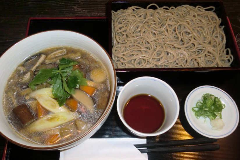 地元那珂市産の野菜をふんだんに使用した、醤油ベースのけんちんに、自慢のそばをつけていただきます。