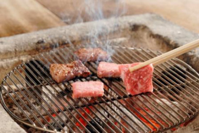 全宅に配置されている囲炉裏で、お好みの加減で焼いていただけます。