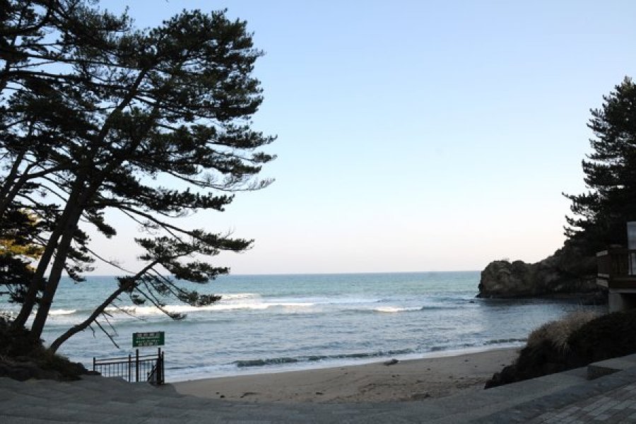 『鵜の岬』が建っているのは、太平洋に面した約15ヘクタールの伊師浜国民休養地の敷地内。