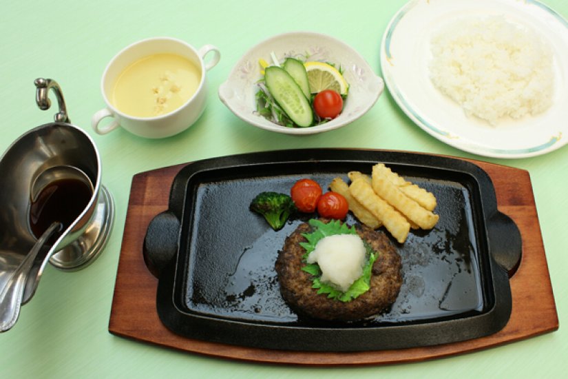 一度挽きした挽肉と二度挽きした挽肉を混ぜ合わせることで、食感をあえて残しました。常陸牛の旨味が味わえるハンバーグです。