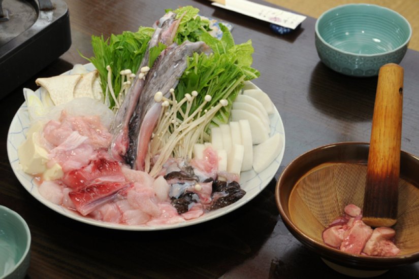 かま家では、水を使わずにあんこう、野菜のみの水分で仕上げる昔ながらの製法「どぶ汁」で提供しています。生のあん肝をすり潰して加えるので、濃厚なあんこうのうま味が味わえます。