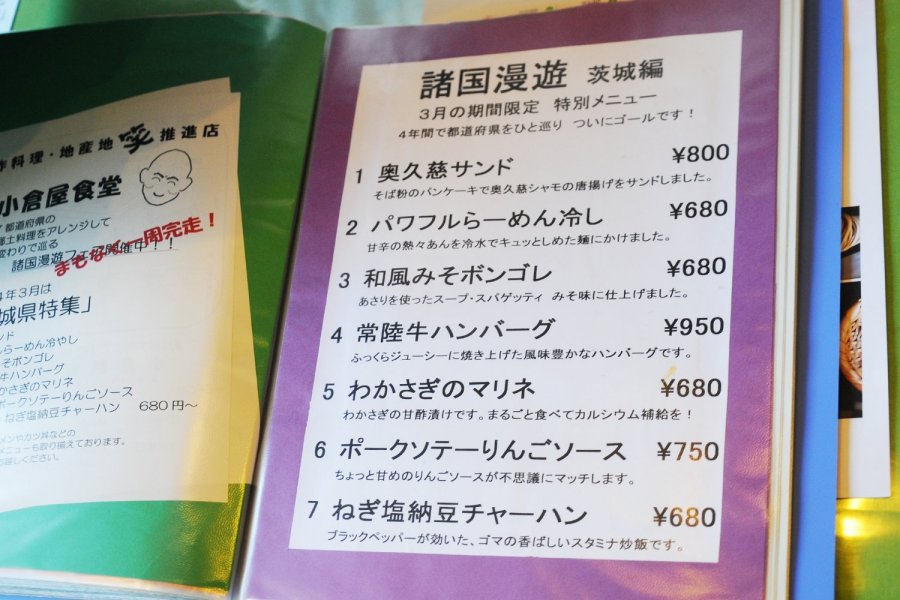 常陸太田市にある「小倉屋食堂」は、全国47都道府県のご当地メニューを再現した「諸国漫遊メニュー」が目玉の定食屋さんです。