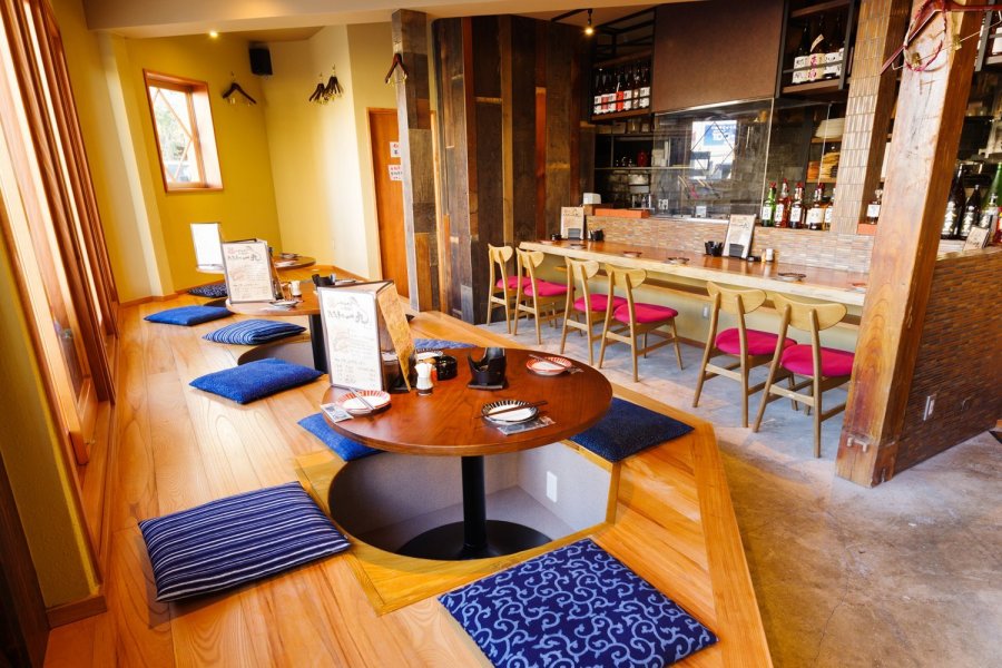 つくば鶏のわらやき、奥久慈しゃも鍋、大洗産釜揚げしらす、土浦れんこん天、ほしいも品評会で金賞受賞歴のあるクロサワファームの干し芋を使用したデザートなど、存分に茨城を堪能できるお店です。