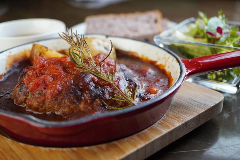 オムライスに負けずに人気の「常陸牛入りハンバーグステーキ」は、茨城の銘柄牛「常陸牛」のひき肉に、隠し味として明利酒類の日本一に輝いた梅酒“百年梅酒”を練り込んでいるそうです。