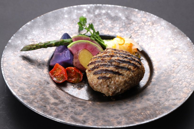 「常陸牛」「ローズポーク」の美味しさを味わえるハンバーグ。ふっくらジューシーで肉汁がじゅわりとあふれ出します。
