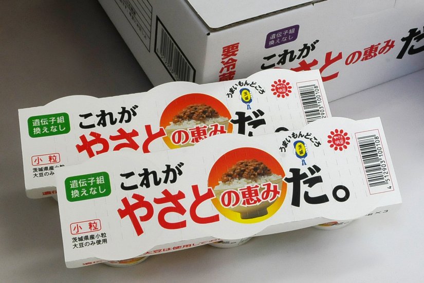 原料100%八郷産大豆、調味料で作られた納豆「これがやさとの恵みだ」はまさに八郷のうまみが詰まった、八郷の恵みをそのまま味わえる納豆です。