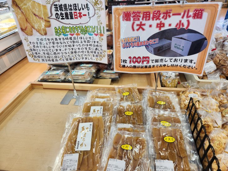 ひたちなか市は国産ほしいも90%のシェアを誇るほしいも生産地です。少量多品目の新鮮野菜はもちろん、美味しい干しいもとオリジナルのツル付高級いちご「バインベリー」や、ほしいもから作った焼酎「へのかっぱ」などの特産品を豊富に取り揃えています。