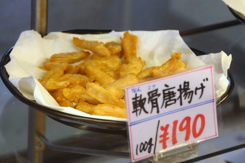 店内には調理場が併設されており、そこで揚げたてアツアツを召しあがれる大人気の「厚揚げ」は、つくば市の豆腐屋さんから毎朝届けられる豆腐を使用。さっぱりとしていて冷めてもおいしいく、衣はサクサク、中の豆腐はトロッとしている大人気商品です。東京からもわざわざこれを求めて来る方も多く、あまりの人気に購入個数に制限が出るほどです。