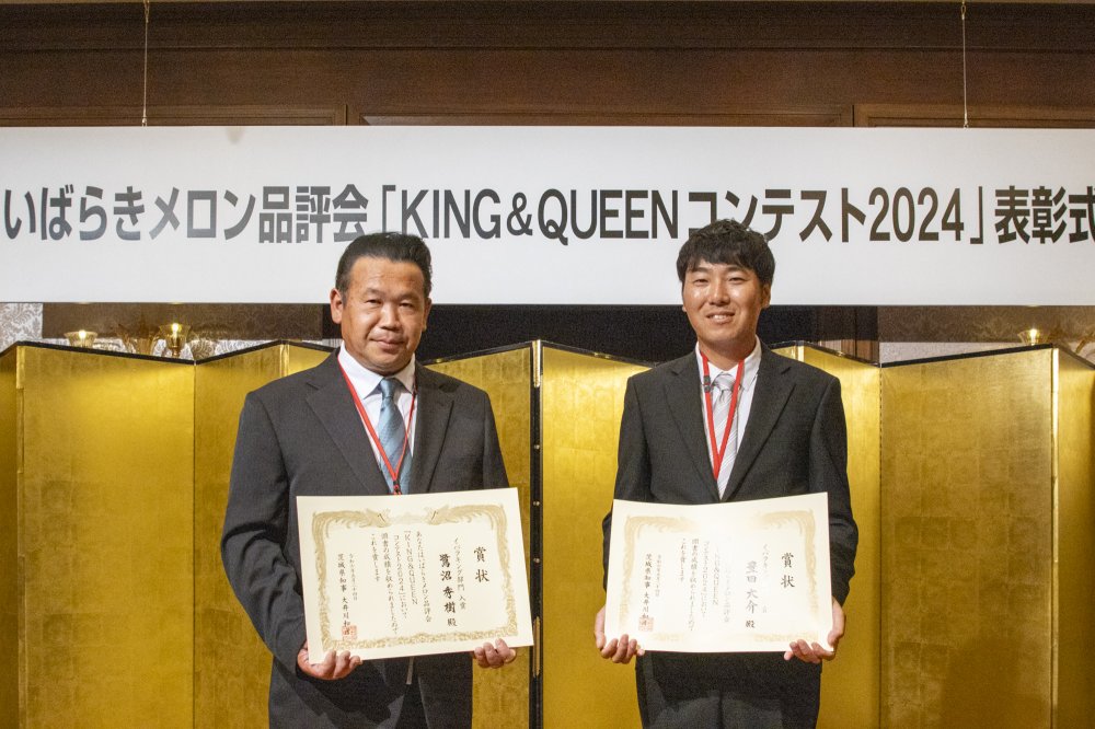 入賞 鷺沼 秀樹さん(鉾田市・JAほこたメロン部会所属)、豊田 大介さん(茨城町・JA水戸茨城町メロン部会所属)