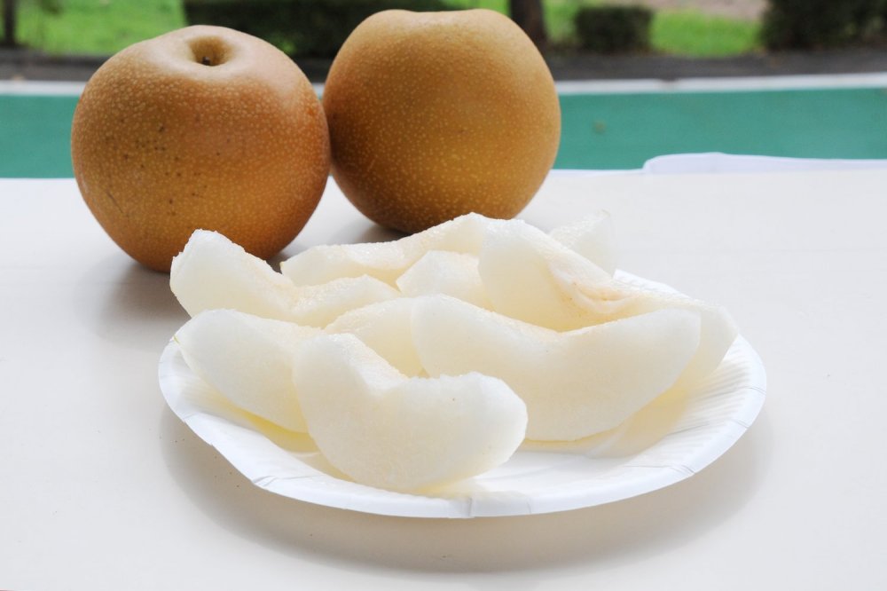 今回で6回目を迎えた本イベントは、総延長180kmのサイクリングロードである「つくば霞ヶ浦りんりんロード」と、今が旬で生産量全国第2位を誇る茨城県の「梨」がコラボして、汗を流したサイクリストに茨城の梨で水分補給してもらうため、この日限定、筑波休憩所で「梨(豊水)」100キロ(280玉)を振る舞うというもの。梨は無料で、おかわりは自由。