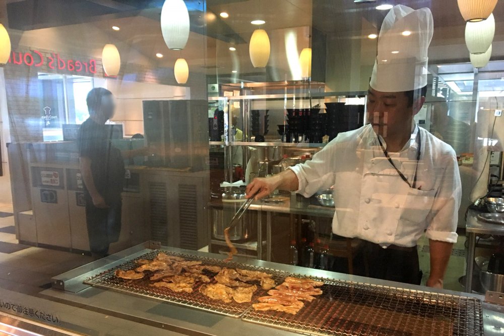 豚肉は、オーダーが入ってから一枚一枚焼き上げられます。