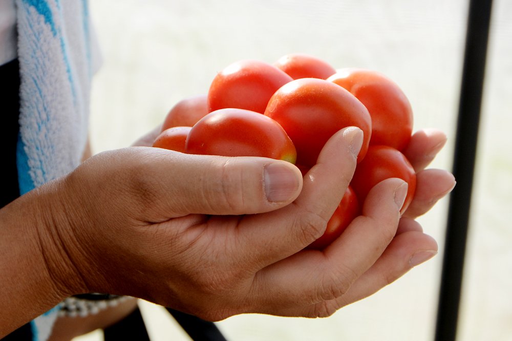 ピーマンと変わらない手のひらサイズ。糖度10度ほどの「スイートカクテルペッパー」