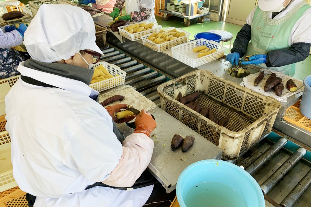 安全や衛生に配慮して、冷風除湿型乾燥システムを導入したことで、一連の作業(芋の皮をむく→カットする→棚に並べる→乾燥)を室内で行うことができるようになり、作業効率が格段に上がったのだとか。